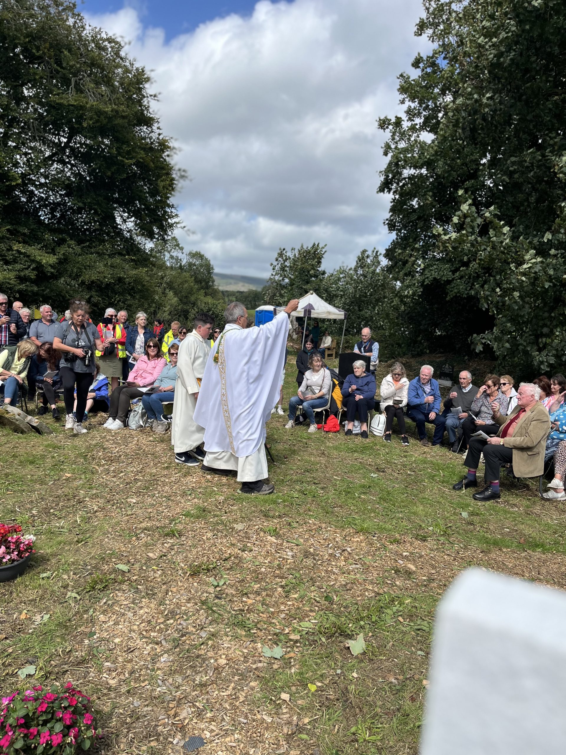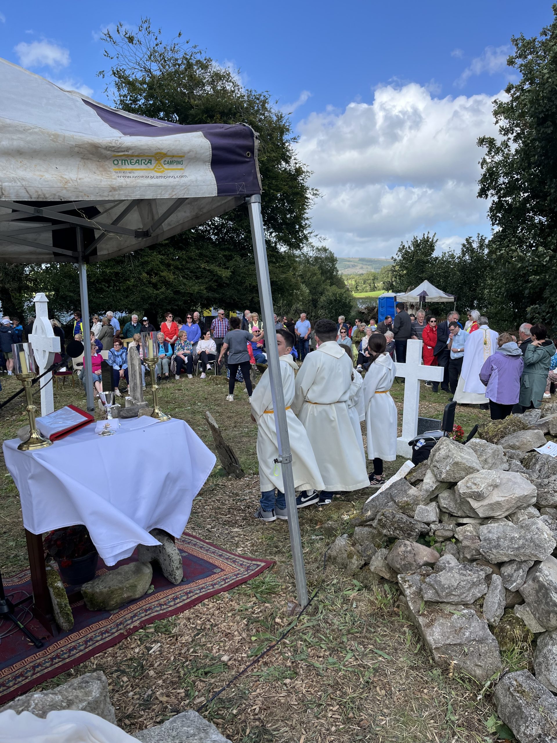 Blessed with good weather, a large congregation travelled out to St Maedhóg’s Island on Port Lake in the parish of Corlough-Templeport on Bank Holiday Monday, 4 August last, when Bishop Martin Hayes celebrated a special Jubilee Year of Hope Mass during which graves on the Island were also blessed. A number of people travelled long distances to attend.