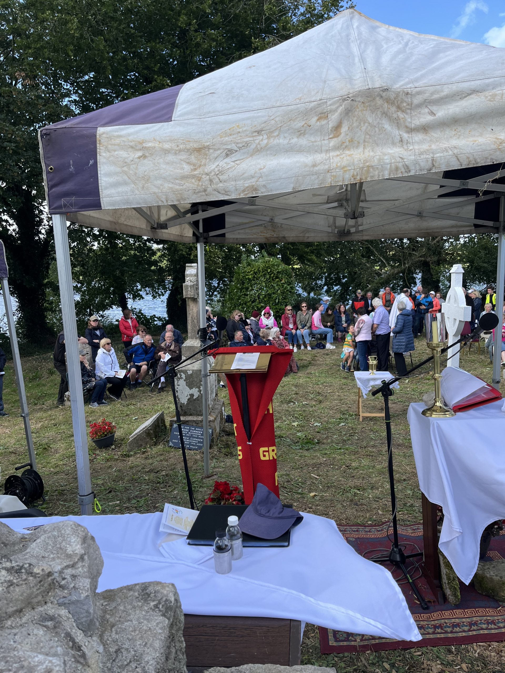 The Mass was transmitted to the shore for a good number of people who were unable to travel across to the Island.