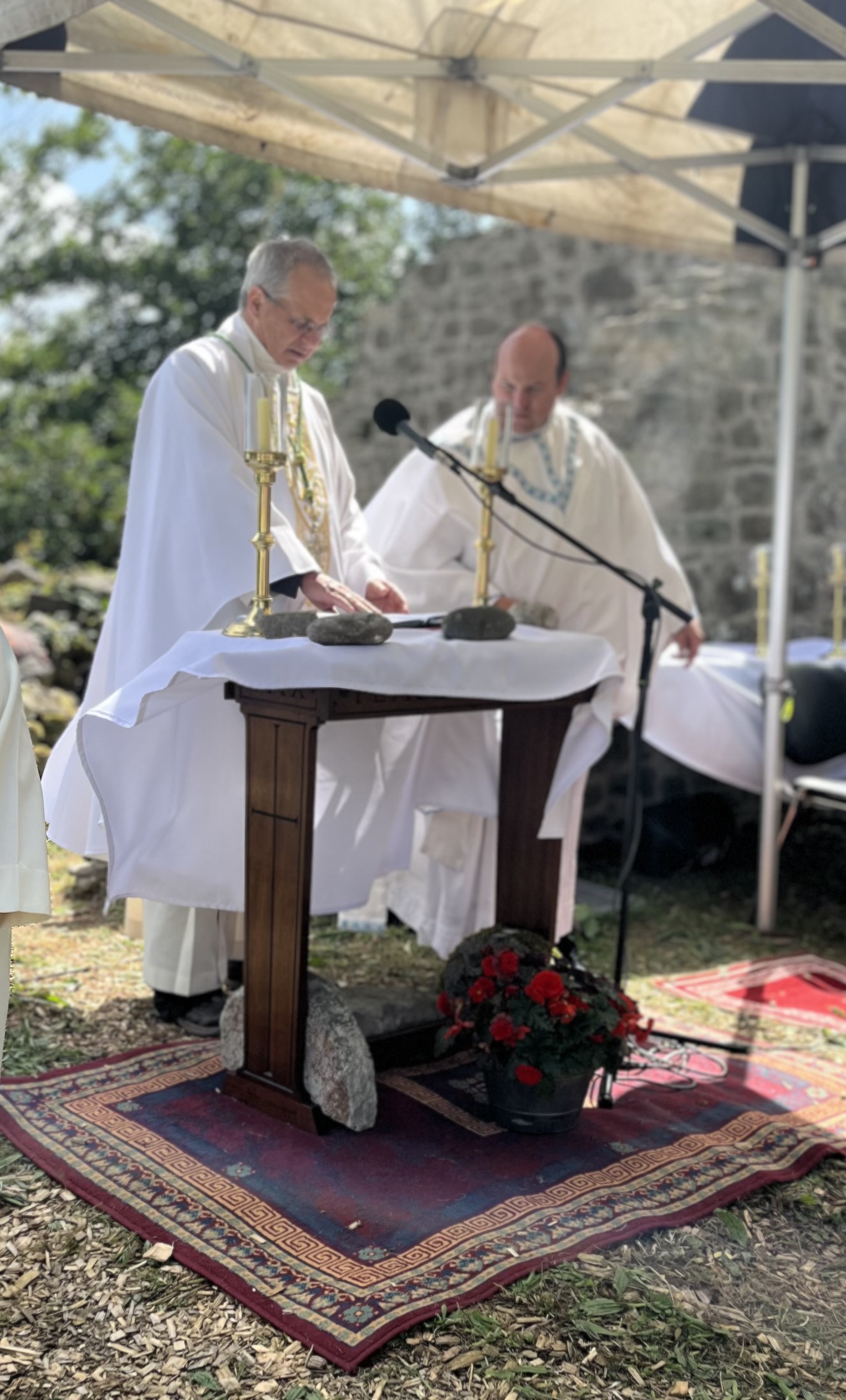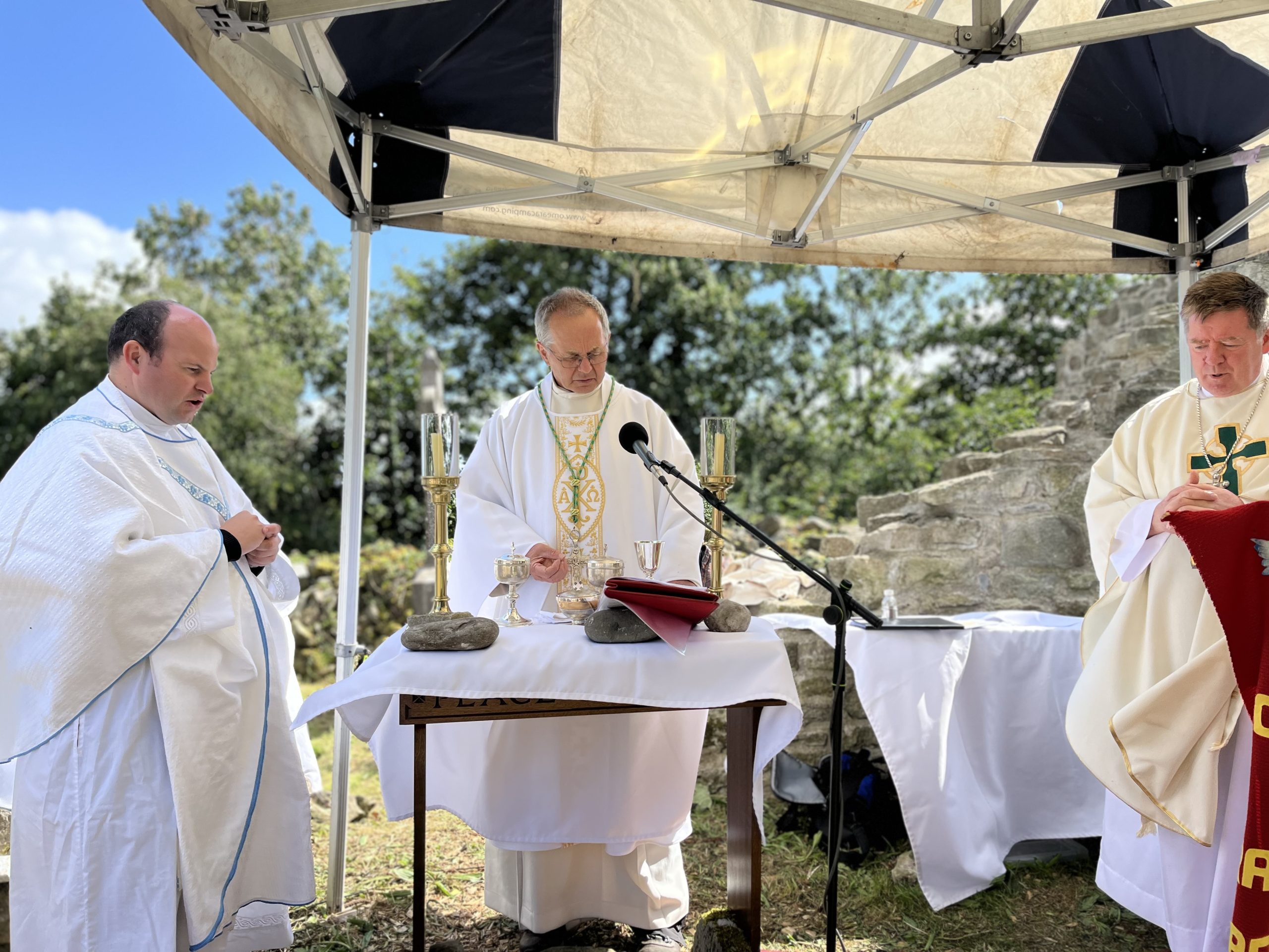 Bishop Martin Hayes and Fr Seán Maguire at the altar in the shadow of the old monastery church