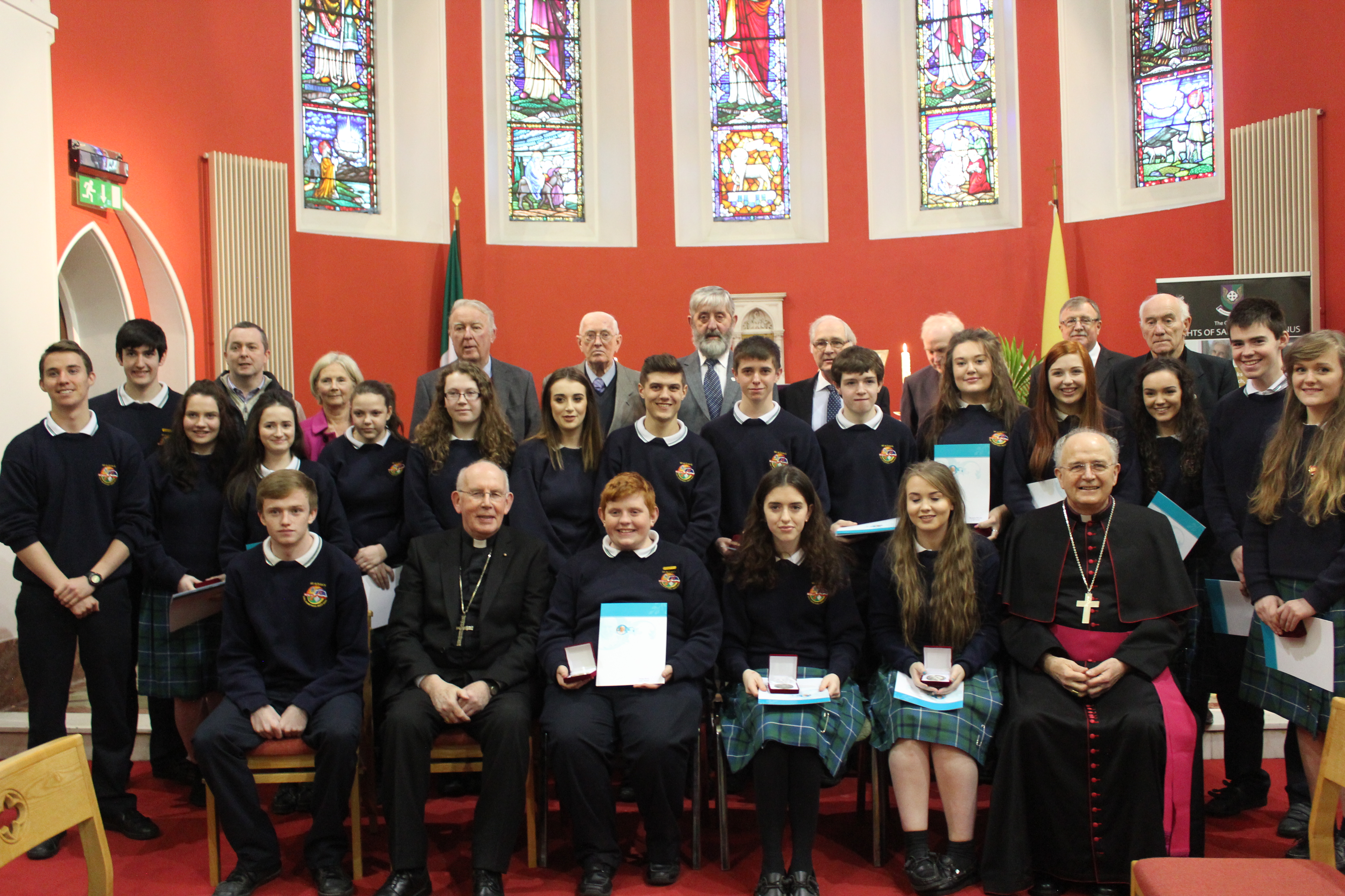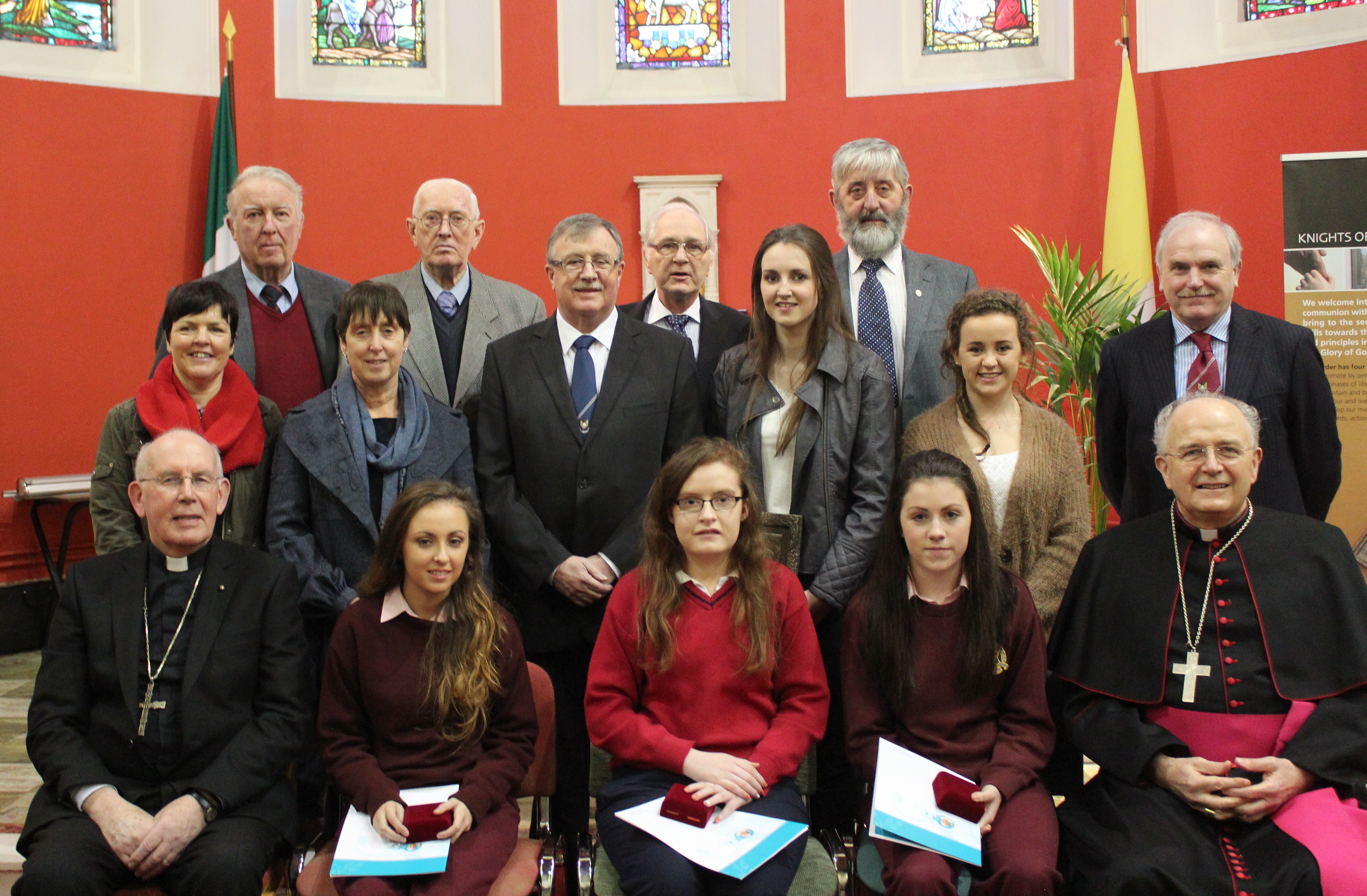 At the awards ceremony on 4th December the candidates were addressed by Barry Mac Mahon, Supreme Knight, Knights of St. Columbanus and Bishop Leo O’Reilly, bishop of Kilmore and patron of the awards in the diocese of Kilmore.Afterwards His Eminence Cardinal Sean Brady presented the awards to the young people.  In his remarks Cardinal  Brady congratulated the young people and thanked them for their generosity of spirit in getting involved in such a concrete way in the life of their Church and community.  He also thanked the Knights of St. Columbanus for their generous support of the Award since its establishment in Kilmore.